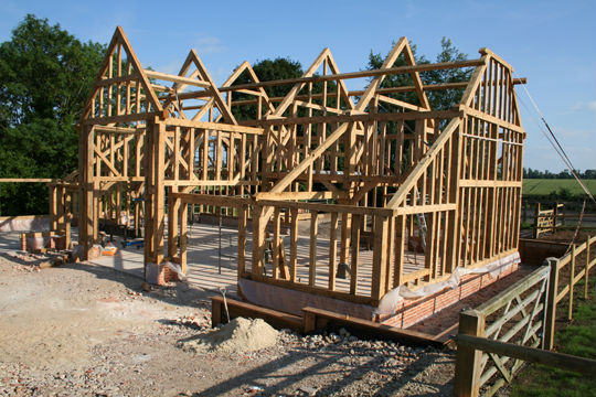 A new green oak frame with floor beams to allow the later insertion of a first floor if required.