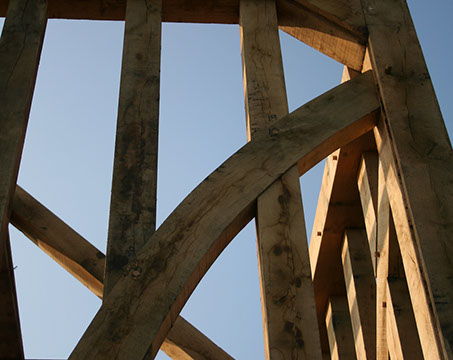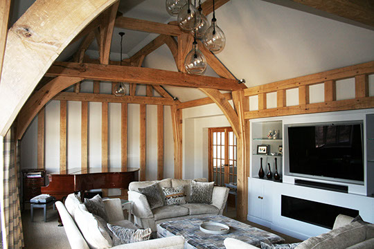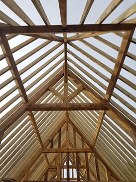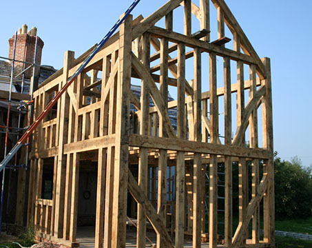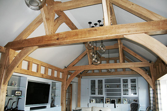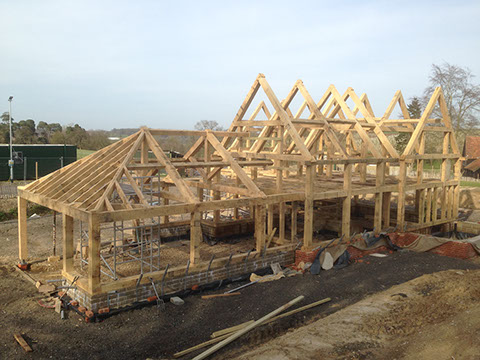 Green Oak frame designed and erected by Hobbans Timberworks.