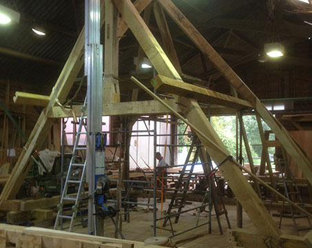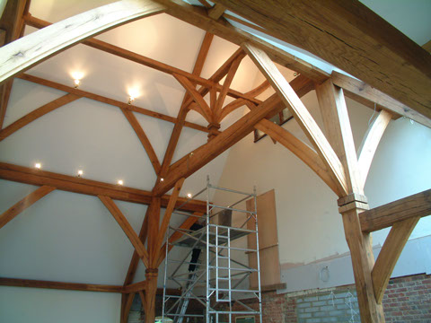 The Cider House. New Build oak frame house, structrual frame only, supplied and erected. Client's own architect & engineer Ashley Largent.