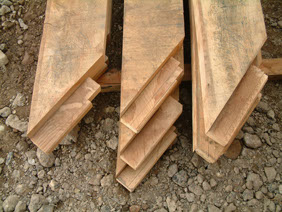 We like to construct even basic frames in a way that ensures that they will withstand the tests of time. The use of jowl posts and braces supporting the wall plates and tie beams give strength and longevity. Our wall studs are all morticed and tenoned to the plates, and all our joints are pegged. The tie beams are morticed and tenoned to the jowl posts and dove-tailed into the wall plates in the traditional way. Our curved braces are cut from specially selected curved timbers, something which the large machine-producing framing companies cannot do.